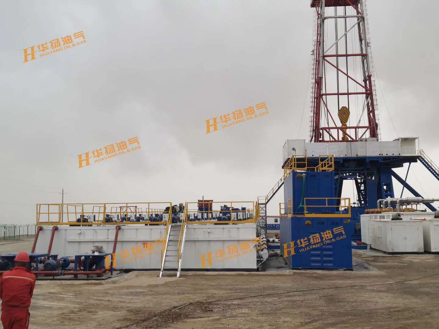ZJ70-4500DBL鉆機(jī)配套固控系統(tǒng),包括了11具泥漿罐、HYZS703三聯(lián)振動(dòng)篩、HYZCQ270真空除氣器、HYQJ250X3S-100X16N除泥除砂一體機(jī)、HYLW600中速離心機(jī)、HYLW350-1N高速離心機(jī)、HYJBQ15攪拌器、HYSLH150-50雙加重系統(tǒng)、HYJQH150-50剪切混漿系統(tǒng)等設(shè)備。