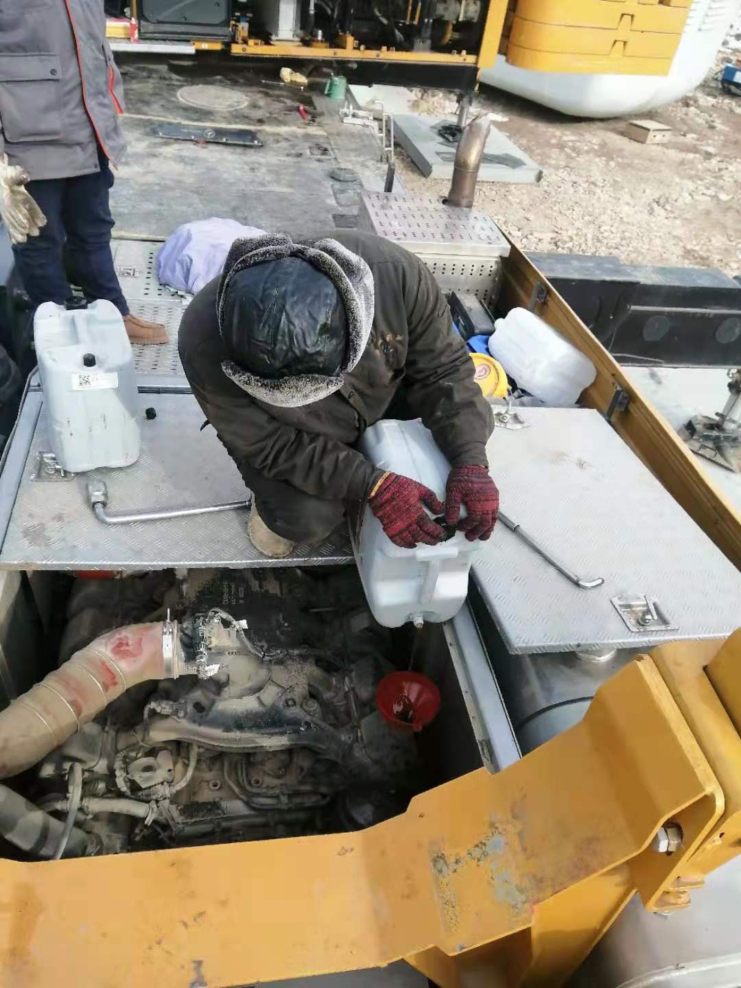 河南惠眾服務人員在河南省洛陽市宜陽縣為三一汽車起重機檢修奔馳發動機故障,幫助客戶解決后處理漏尿素液,蓄電池電壓不穩,選擇性催化還原劑空氣壓縮進氣系統故障等問題。雖然天氣異常寒冷,河南惠眾服務人員仍然堅持客戶為先的服務理念,保證服務質量。