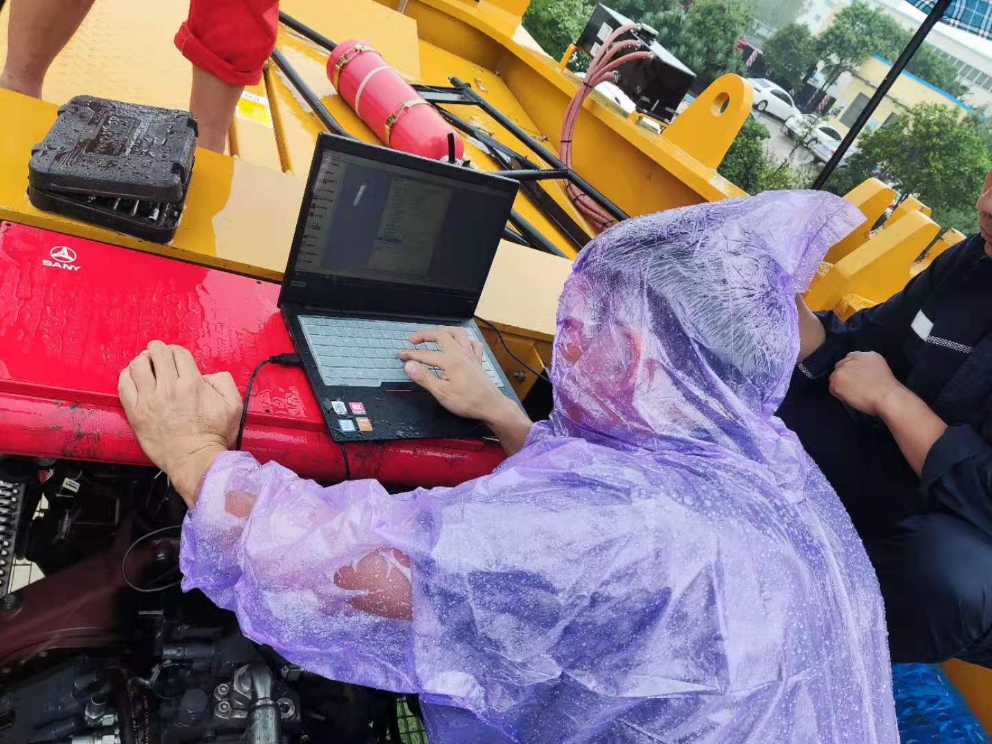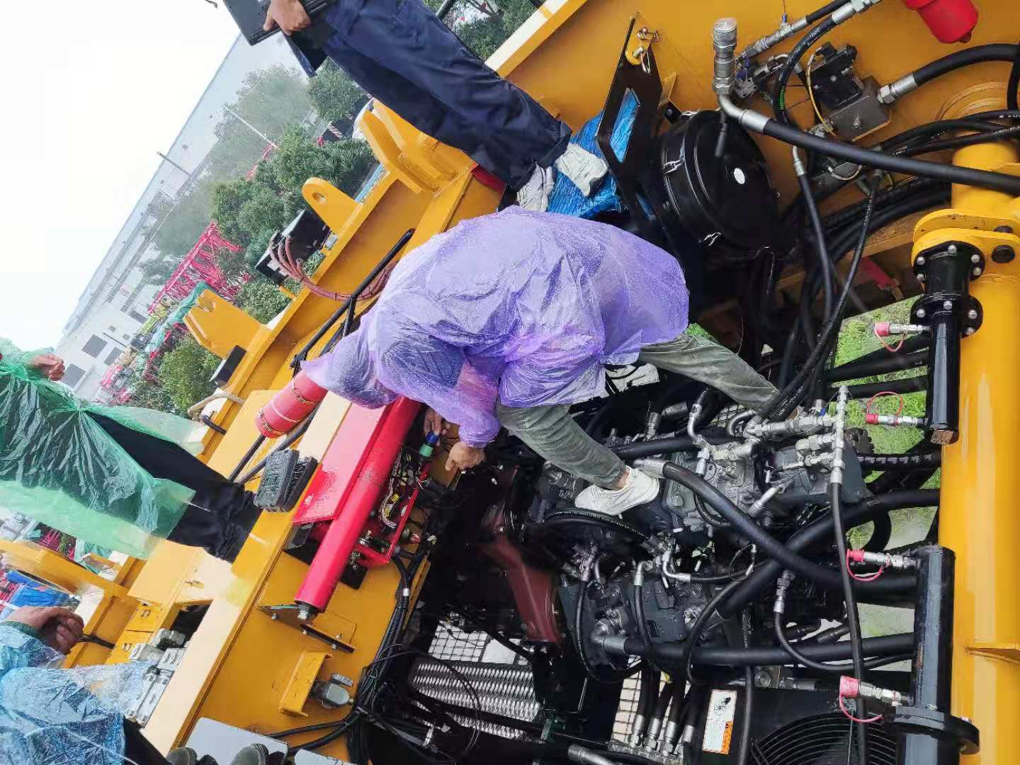 巡檢人員到達的時候,新鄉(xiāng)已經(jīng)下起了雨,他們只能穿著雨衣,淋著雨對發(fā)動機進行檢查